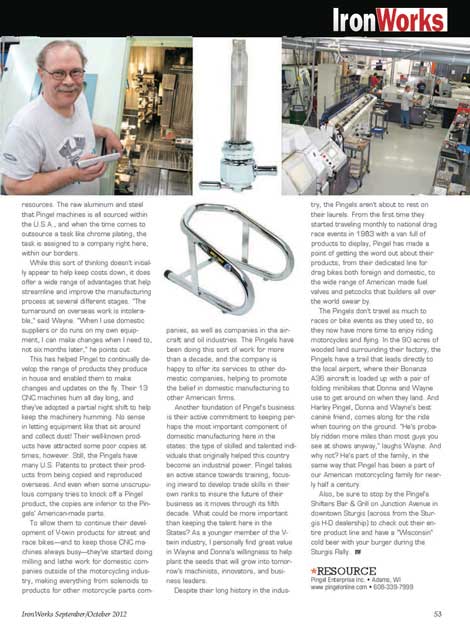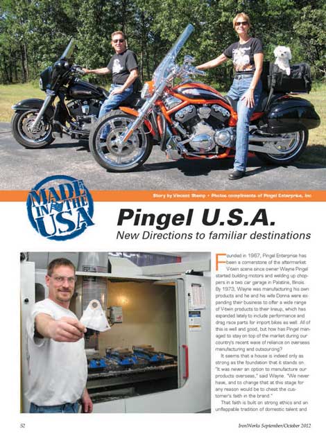 Founded in 1967, Pingel Enterprise has been a cornerstone of the aftermarket V-twin scene since owner Wayne Pingel started building motors and welding up choppers in a two car garage in Palatine, Illinois. By 1973, Wayne was manufacturing his own products and he and his wife Donna were expanding their business to offer a wide range of V-twin products to their lineup, which has expanded lately to include performance and drag race parts for import bikes as well. All of this is well and good, but how has Pingel managed to stay on top of the market during our country’s recent wave of reliance on overseas manufacturing and outsourcing?