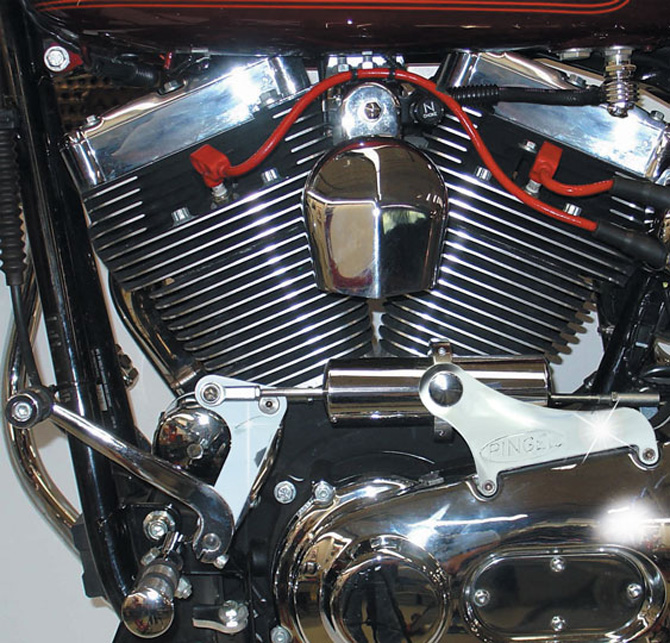 Electric Speed Shifter Kit Softails without floorboards 2000-2006. Pingel Electric Speed Shifter Kits include a dual button handlebar control, a shift cylinder support bracket and the state of the art control module which sends a quick signal from the dual button handlebar control to the shift cylinder. Also included is the electronic engine kill module and step-by-step instructions with photos for an easy 2-3 hour installation.