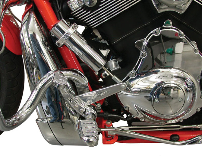 Electric Speed Shifter Kit for V-Rod VRSCSE1 2005. Pingel Electric Speed Shifter Kits include a dual button handlebar control, a shift cylinder support bracket and the state of the art control module which sends a quick signal from the dual button handlebar control to the shift cylinder. Also included is the electronic engine kill module and step-by-step instructions with photos for an easy 2-3 hour installation.