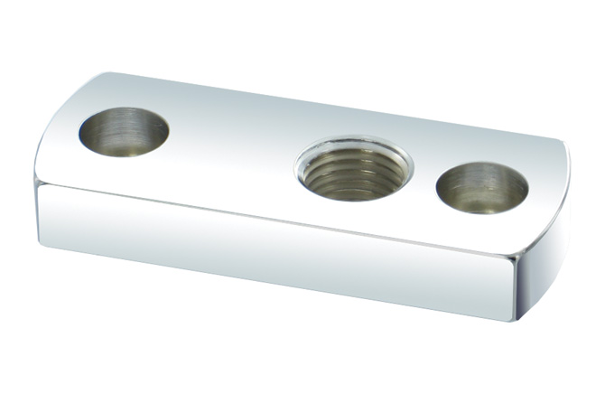 Fuel Valve Adapter Plate - FemaleThread 1/4" NPT with 44mm (approx. 1-3/4") bolt pattern. The adapter plate is bolted to the tank with the fuel valve threaded into or onto the plate. The adapter plate comes complete with gasket, screws and copper sealing washers. Chrome plated brass.