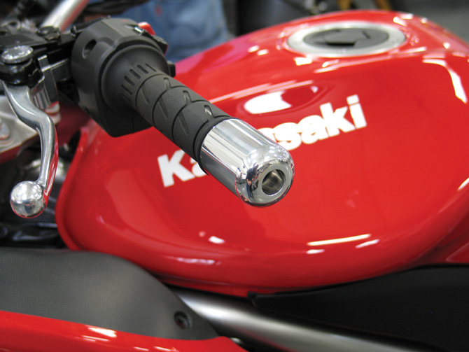 Help prevent damage in the event of a crash with these highly polished aluminum handlebar ends. This design features a clean appearance without logos for a smooth custom look. Polished stainless steel screws included where applicable. Sold in pairs. Fits the following Kawasaki models: