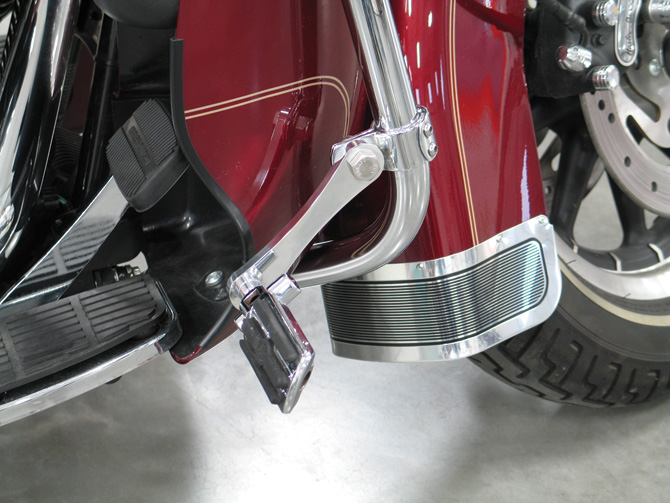 Short-Bones Highway Peg Brackets for Dynas with mid-mount controls 1994-2005 and Ultras and Classics. Designed with the short inseam rider in mind. The Short-Bones are a simple and cost effective answer for relocating the stock highway bar pegs on any motorcycle with 1-1/4" engine guards using Drag Specialties engine guard clamp DS-203008A and footpeg clevis mount DS-253483. They can also be used with the three-piece clamp kit for 1-1/4" engine guards offered by Harley-Davidson, part #50903-85T and foot peg clevis kit, part #50900-72TA. CNC machined from billet aluminum and highly polished. Lower fairings on some H-D models may interfere with mounting. Includes easy to follow instructions for quick installation.