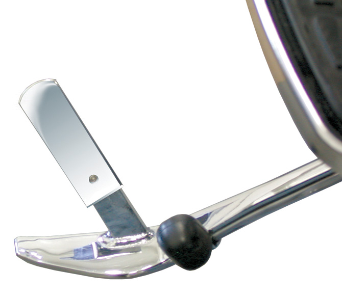 Kickstand Extension for FLH 1986-2025 (except OEM Lows) and FXR 1982-1994. If you have problems reaching or locating your kickstand because of a wider primary cover or a short inseam, you really need a Kickstand Extention. This quality piece is manufactured from stainless steel and has a clean and highly polished custom look. The kickstand Extension is adjustable from 1 3/4" to 2 3/4 " extension lengths. Installation is as simple as just tightening one set screw.
