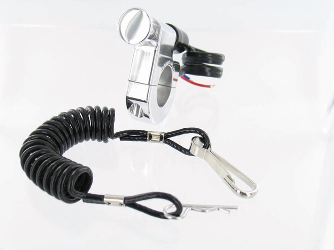 No need to worry about expensive blown engine parts from over revving with this quality Pingel Safety Kill Switch. Polished 6061 billet aluminum body for the performance-minded strip rider. Water-resistant switch, stainless steel internal components. Complete with clipped tether cord that extends to a full 50" length.