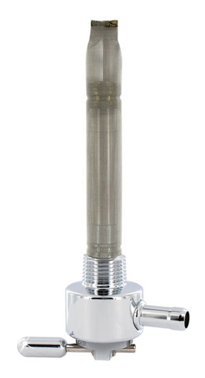 Power-Flo Single Outlet Reserve Fuel Valve. 3/8" NPT Inlet. 6000 Series. 5/16" hose barb. Chrome. Round design.