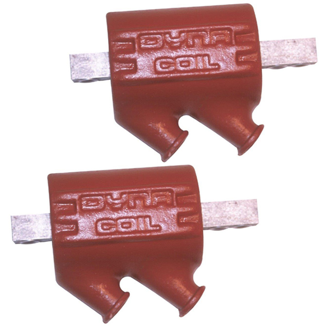 DC2-1 Two Dyna Coils with Dual outputs. Primary resistance 1.5 ohms and secondary resistance 14,000 ohms. These high tech, top quality coils are designed for maximum performance. They produce spark voltages in excess of 30,000 volts and spark energies second to none. DYNA Coils are made to replace stock coils. Choose from three configurations and five variations of resistance for different applications. DYNA Coils work with point ignitions, aftermarket electronic ignitions and factory electronic ignitions. Before selecting a coil, check the coil primary resistance requirements as specified by the manufacturer of the ignition being used.