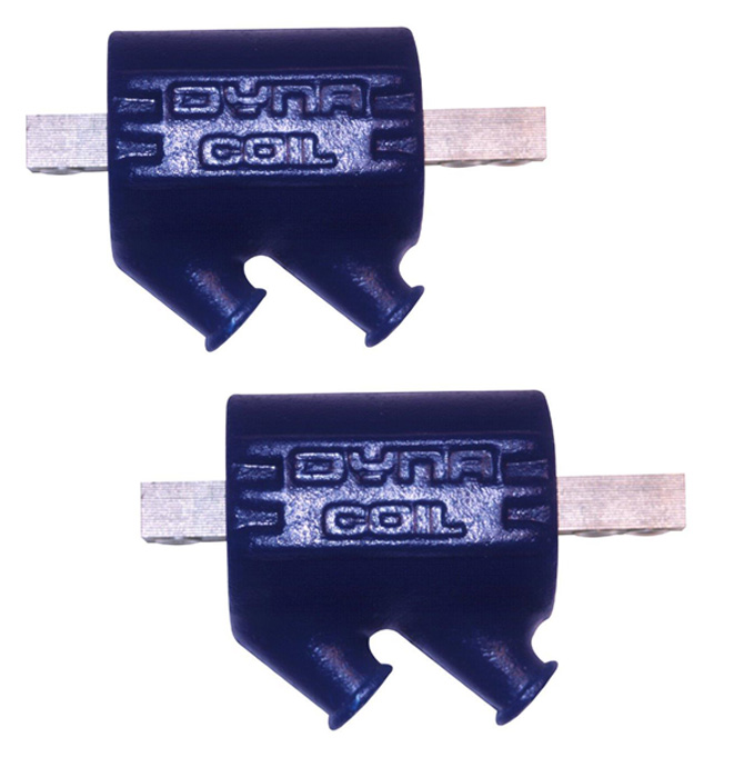 DC9-1 Two Dyna Coils with Dual outputs. Primary resistance is 0.7 ohms and secondary resistance is 11,500 ohms. These high tech, top quality coils are designed for maximum performance. They produce spark voltages in excess of 30,000 volts and spark energies second to none. DYNA Coils are made to replace stock coils. Choose from three configurations and five variations of resistance for different applications. DYNA Coils work with point ignitions, aftermarket electronic ignitions and factory electronic ignitions. Before selecting a coil, check the coil primary resistance requirements as specified by the manufacturer of the ignition being used.