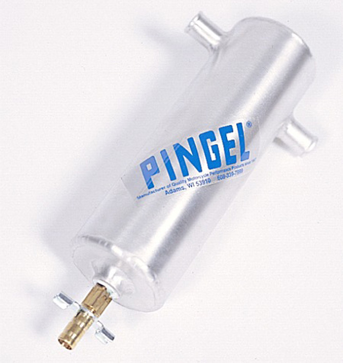 This Oil Catch Can is made of aluminum, stands 6 tall and has a 2 diameter. There are two ½ hose connections and a T-handle drain valve.