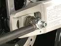 Top tube of wheelie bars mount to a special bracket attached to the passenger