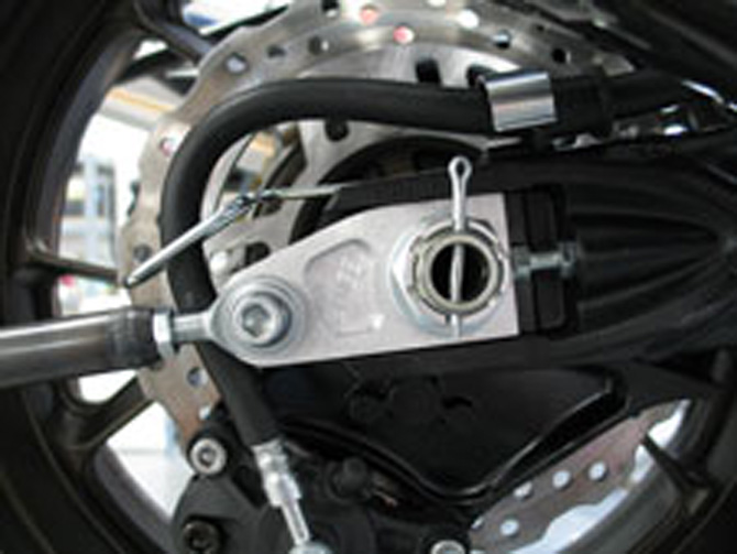 Top tube of wheelie bars mount to a special bracket attached to the passenger