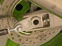Top tube of wheelie bars mount to a special bracket attached to the passenger